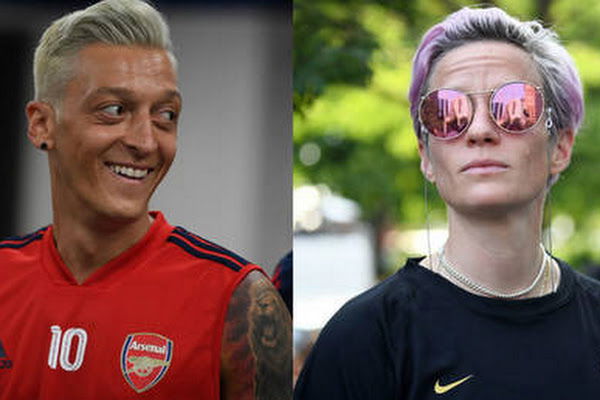 Pierre-Emerick Aubameyang ได้เปรียบเทียบทรงผมใหม่ของ Mesut Ozil กับ Megan Rapinoe ระหว่างประเทศสหรัฐอเมริกา